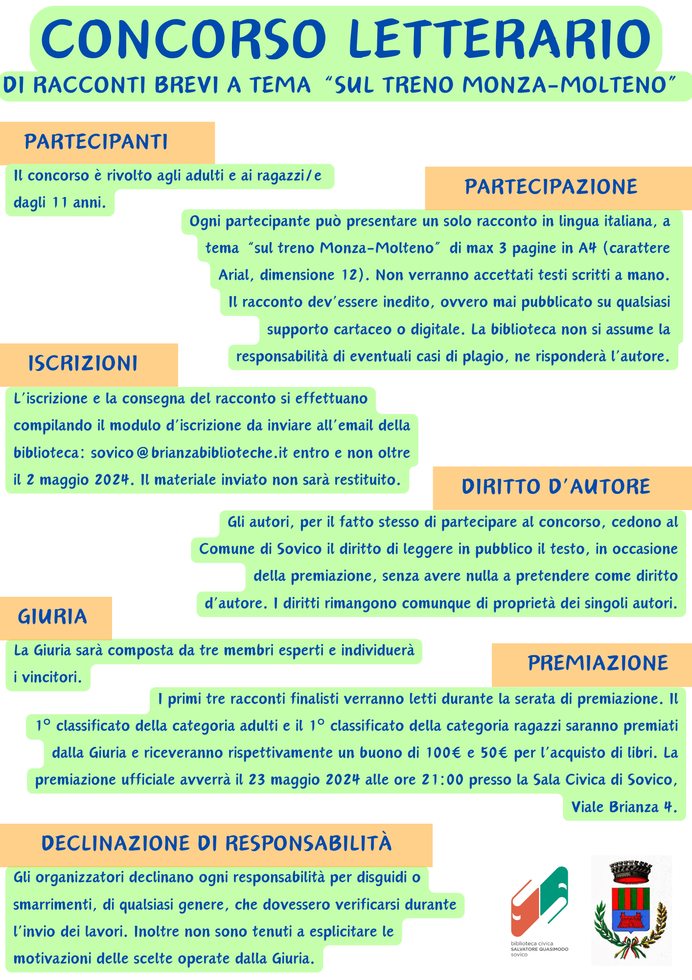 CONCORSO LETTERARIO DI RACCONTI BREVI A TEMA “SUL TRENO MONZA-MOLTENO”